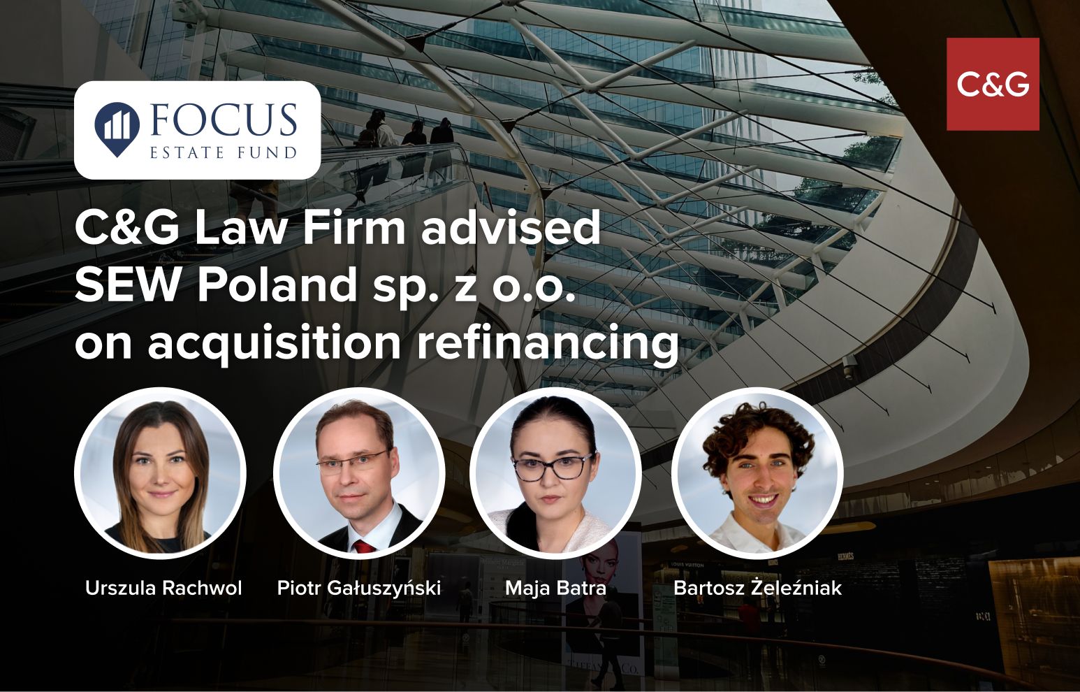 Czabański Gałuszyński i Partnerzy advised SEW Poland sp. z o.o., a member of the Focus Estate Fund group, on the refinancing of the acquisition of three shopping centres with a total gross leasable area of 46,000 sqm.